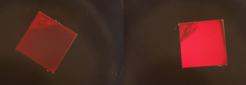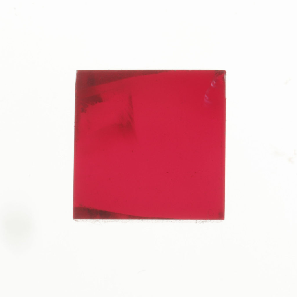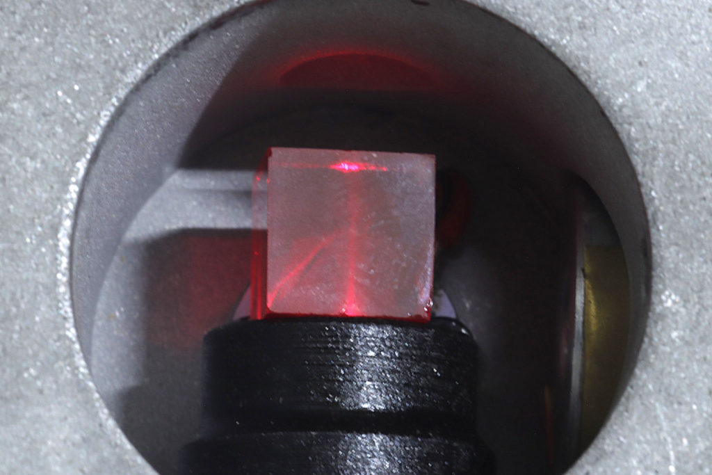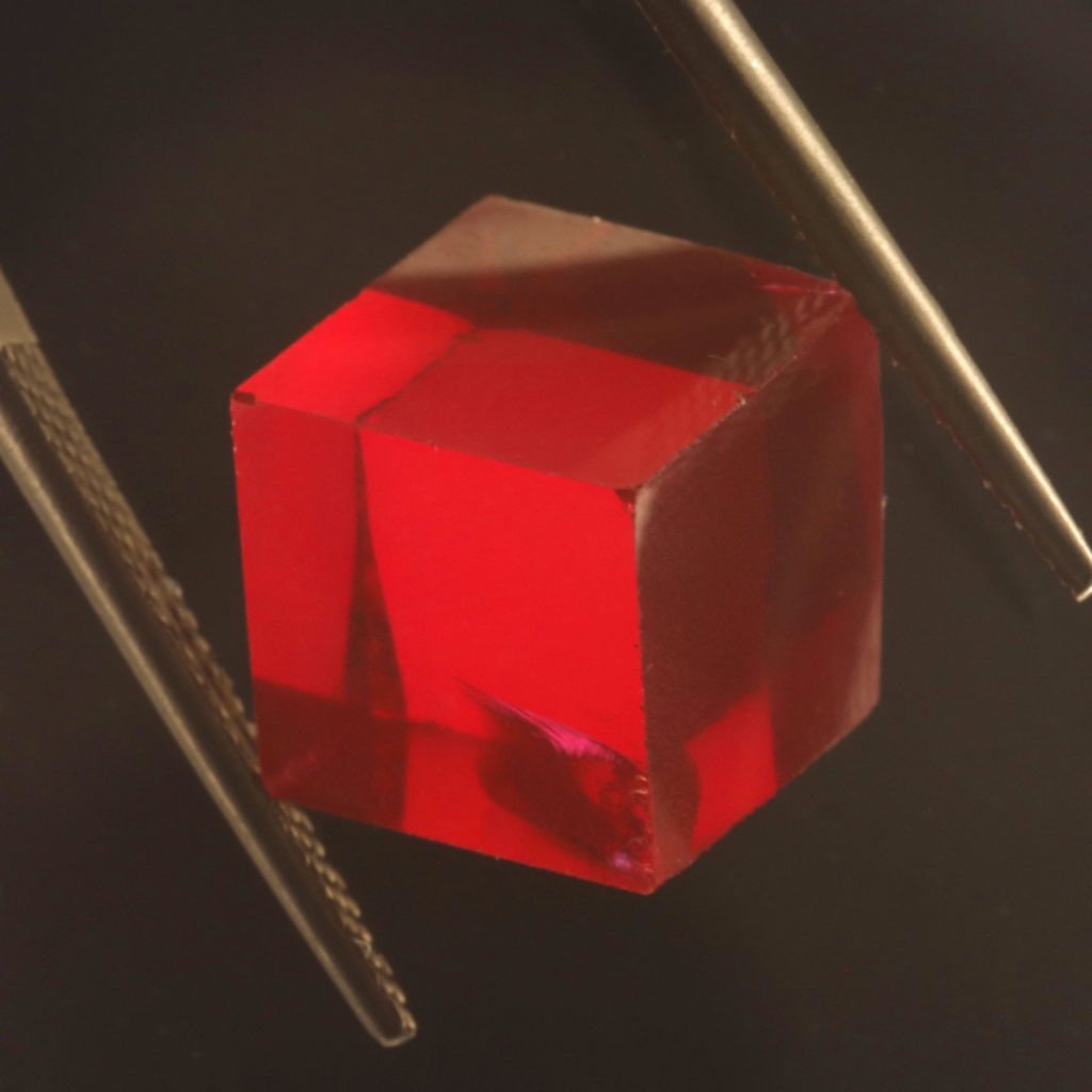 A jelenség tiszta vizsgálatához ezért egy polírozott felületekkel rendelkező, közel izometrikus geometriájú szintetikus rubin kockát választottunk.